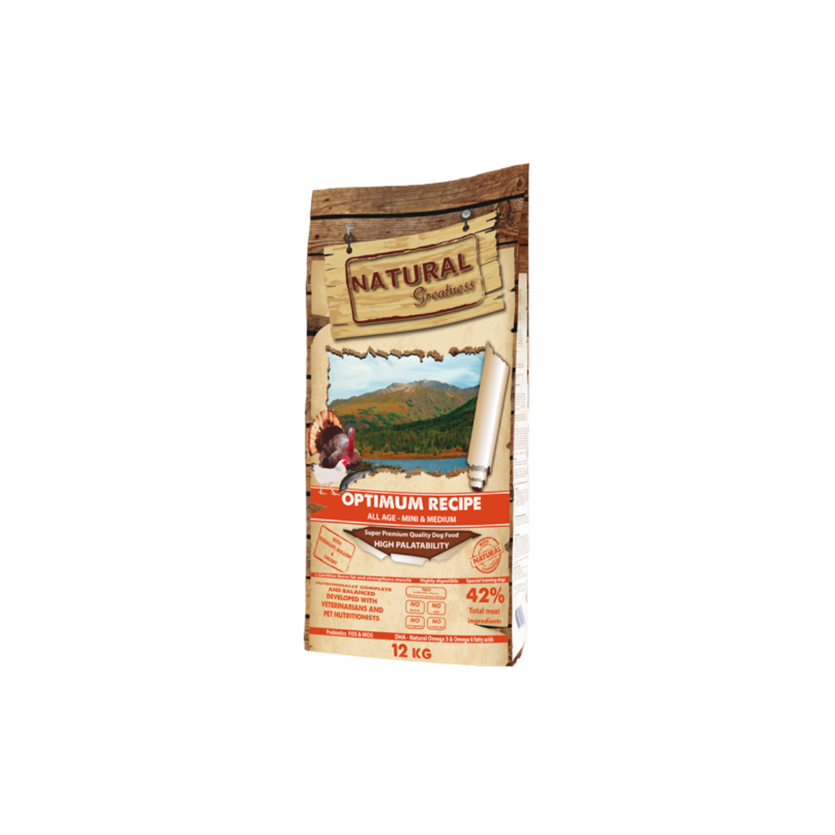 Carne deshidratada de pavo y Carne deshidratada de pollo (20%), Carne fresca de pollo (10%), Trigo, Guisantes, Aceite de pollo (7,5%), Cebada, Maíz, Arroz, Hidrolizado de hígado de pollo (2%), Salmón deshidratado (2%), Pulpa de remolacha, Aceite de pescado (0,5%), Levadura, Sustancias minerales, Romero, Achicoria, Malva.