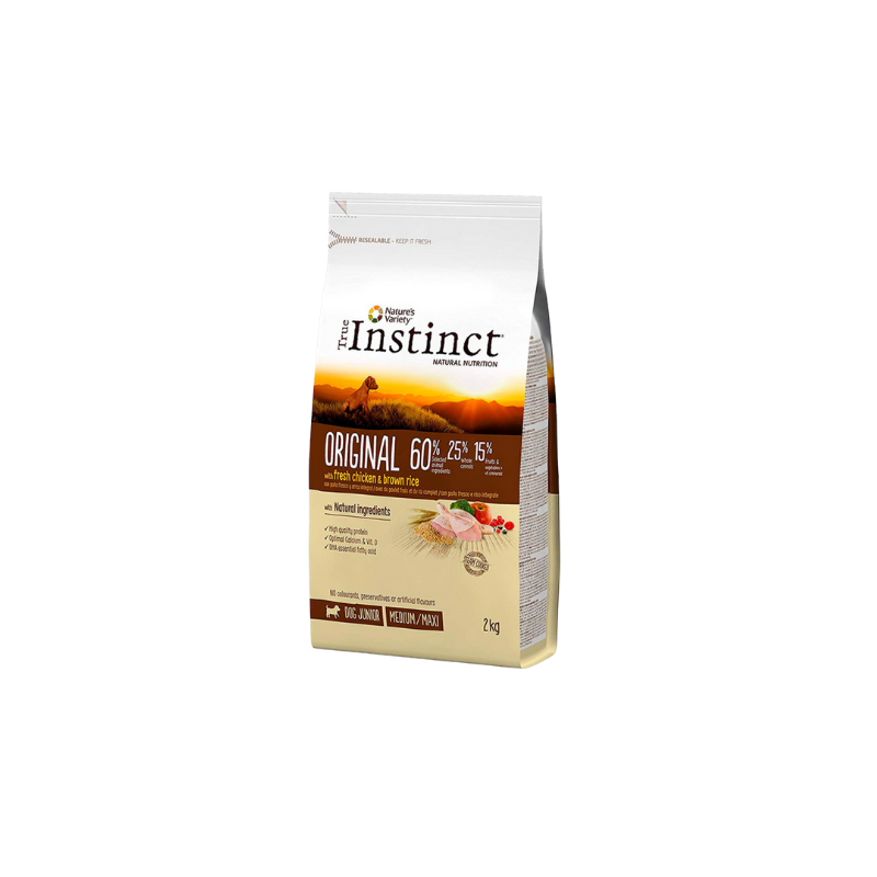 Pollo* (23,5%, con 4% de muslos de pollo), pollo deshidratado (17%), cebada integral* (12%), arroz integral* (8,5%), guisantes deshidratados*, cerdo deshidratado (8,5%), manteca (7%) (estabilizada con tocoferoles naturales), avena*, hidrolizado de proteína (3,5%), pulpa de remolacha*, sustancias minerales, semilla de lino*, aceite de pescado (0,5%), zanahoria deshidratada*, manzana deshidratada* (0,35%), brócoli deshidratado* (0,15%), frutos rojos deshidratados* (0,01%). *Ingredientes naturales.