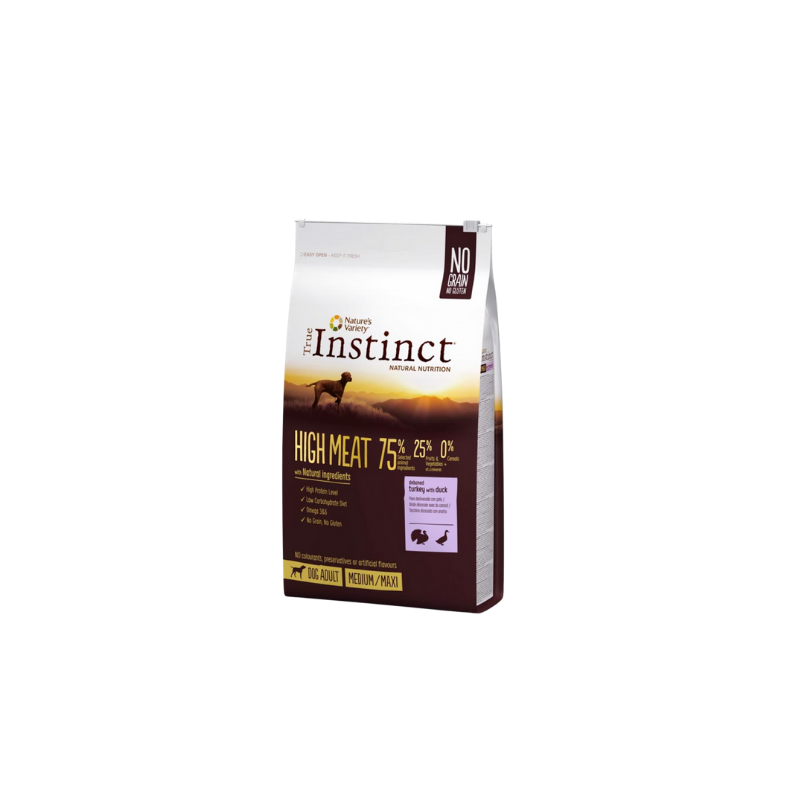 Receta con un alto contenido en carne, sin cereales y baja en carbohidratos (max. 20% ELN) para satisfacer la nutrición instintiva del perro.